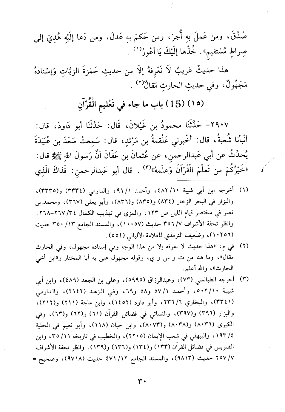 2919 - حَدَّثَنَا الحَسَنُ بْنُ عَرَفَةَ، قَالَ: حَدَّثَنَا إِسْمَاعِيلُ بْنُ عَيَّاشٍ، عَنْ بَحِيرِ بْنِ سَعْدٍ، عَنْ خَالِدِ بْنِ مَعْدَانَ، عَنْ كَثِيرِ بْنِ مُرَّةَ الحَضْرَمِيِّ، عَنْ عُقْبَةَ بْنِ عَامِرٍ، قَالَ: سَمِعْتُ رَسُولَ اللهِ صَلَّى اللَّهُ عَلَيْهِ وَسَلَّمَ يَقُولُ: الجَاهِرُ بِالقُرْآنِ، كَالجَاهِرِ بِالصَّدَقَةِ، وَالمُسِرُّ بِالقُرْآنِ، كَالمُسِرِّ بِالصَّدَقَةِ.