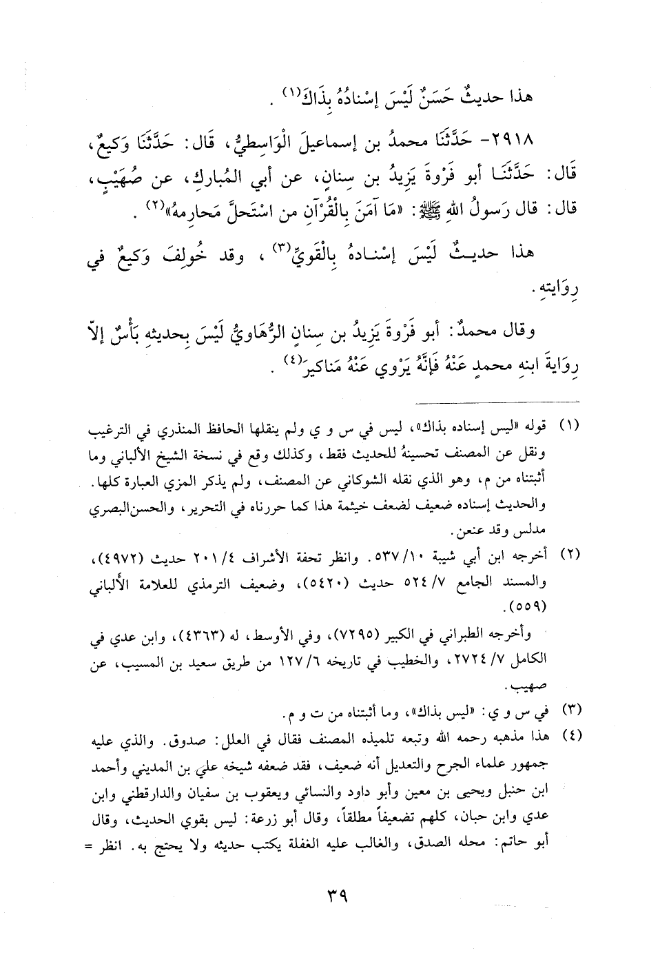 2936 - حَدَّثَنَا مُحَمَّدُ بْنُ حُمَيْدٍ الرَّازِيُّ، قَالَ: حَدَّثَنَا نُعَيْمُ بْنُ مَيْسَرَةَ النَّحْوِيُّ، عَنْ فُضَيْلِ بْنِ مَرْزُوقٍ، عَنْ عَطِيَّةَ العَوْفِيِّ، عَنِ ابْنِ عُمَرَ، أَنَّهُ قَرَأَ عَلَى النَّبِيِّ صَلَّى اللَّهُ عَلَيْهِ وَسَلَّمَ {خَلَقَكُمْ مِنْ ضَعْفٍ} فَقَالَ: (مِنْ ضُعْفٍ).