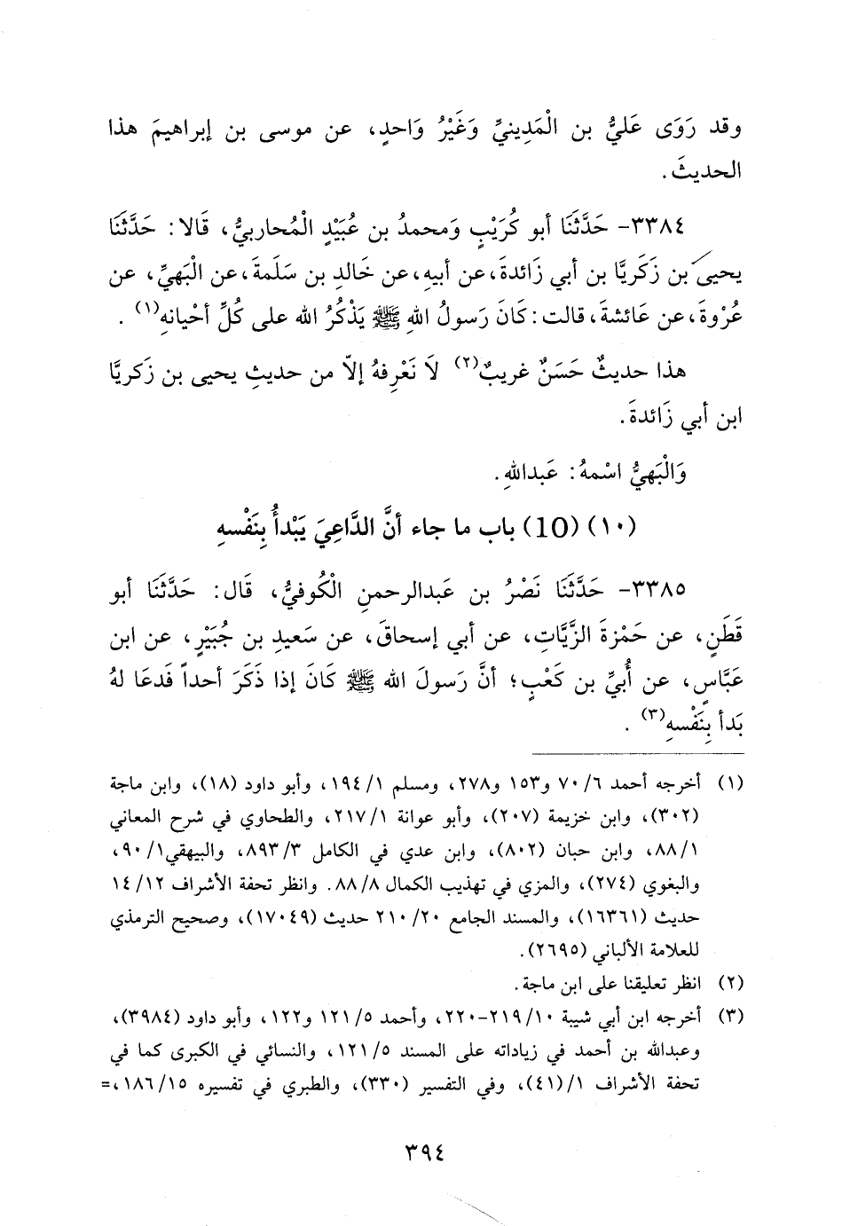3477 - حَدَّثَنَا مَحْمُودُ بْنُ غَيْلاَنَ، قَالَ: حَدَّثَنَا الْمُقْرِئُ، قَالَ: حَدَّثَنَا حَيْوَةُ بْنُ شُرَيْحٍ، قَالَ: حَدَّثَنِي أَبُو هَانِئٍ، أَنَّ عَمْرَو بْنَ مَالِكٍ الجَنْبِيَّ، أَخْبَرَهُ أَنَّهُ سَمِعَ فَضَالَةَ بْنَ عُبَيْدٍ، يَقُولُ: سَمِعَ النَّبِيُّ صَلَّى اللَّهُ عَلَيْهِ وَسَلَّمَ رَجُلاً يَدْعُو فِي صَلاَتِهِ فَلَمْ يُصَلِّ عَلَى النَّبِيِّ صَلَّى اللَّهُ عَلَيْهِ وَسَلَّمَ، فَقَالَ النَّبِيُّ صَلَّى اللَّهُ عَلَيْهِ وَسَلَّمَ: عَجِلَ هَذَا، ثُمَّ دَعَاهُ فَقَالَ لَهُ أَوْ لِغَيْرِهِ: إِذَا صَلَّى أَحَدُكُمْ فَلْيَبْدَأْ بِتَحْمِيدِ اللهِ وَالثَّنَاءِ عَلَيْهِ، ثُمَّ لْيُصَلِّ عَلَى النَّبِيِّ صَلَّى اللَّهُ عَلَيْهِ وَسَلَّمَ، ثُمَّ لْيَدْعُ بَعْدُ بِمَا شَاءَ.