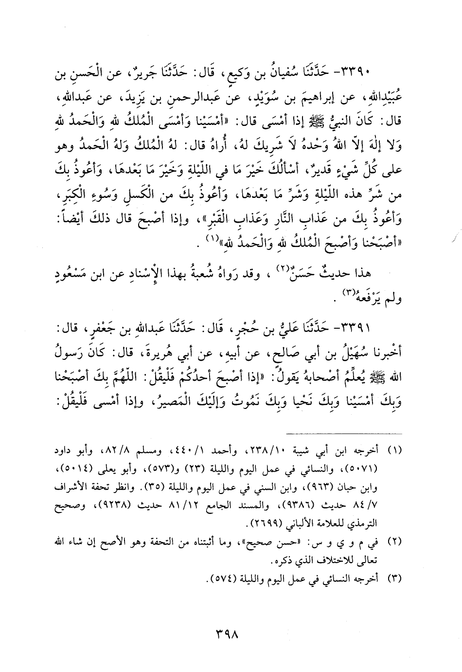 3486 - حَدَّثَنَا مُحَمَّدُ بْنُ عَبْدِ الأَعْلَى، قَالَ: حَدَّثَنَا عَثَّامُ بْنُ عَلِيٍّ، عَنِ الأَعْمَشِ، عَنْ عَطَاءِ بْنِ السَّائِبِ، عَنْ أَبِيهِ، عَنْ عَبْدِ اللهِ بْنِ عَمْرٍو، قَالَ: رَأَيْتُ النَّبِيَّ صَلَّى اللَّهُ عَلَيْهِ وَسَلَّمَ يَعْقِدُ التَّسْبِيحَ بِيَدِهِ.