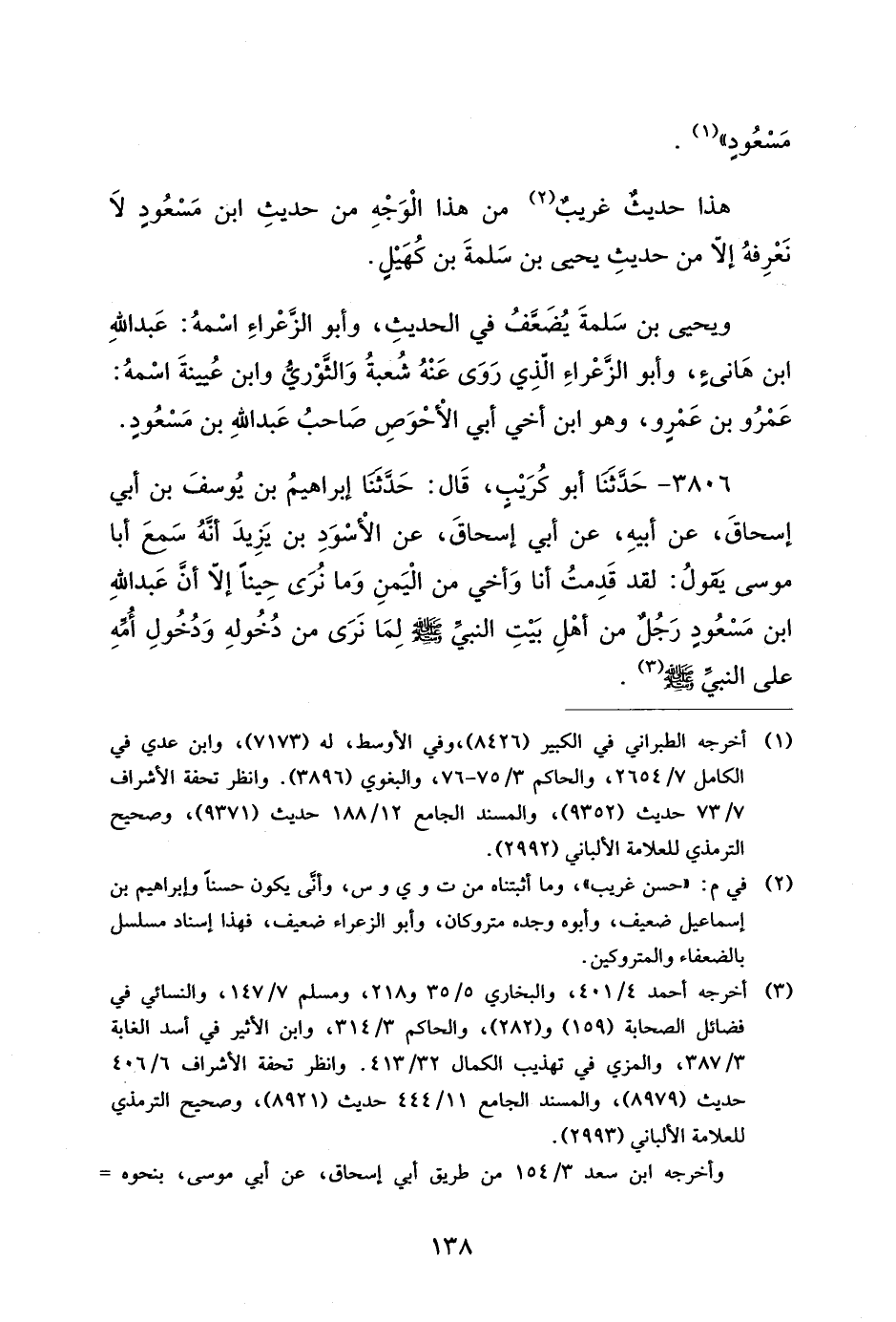 (1) حذف بشار هذا الحديث، وكتَبَ: وهذا الحديث، مع تعليق الْمُصَنِّف عليه، سيأتي (3898)، ولم نجد في شيءٍ من النسخ والشروح التي بين أيدينا ذِكرًا له في هذا الْموضع، فكأنه مقحمٌ هنا. أ. هـ.