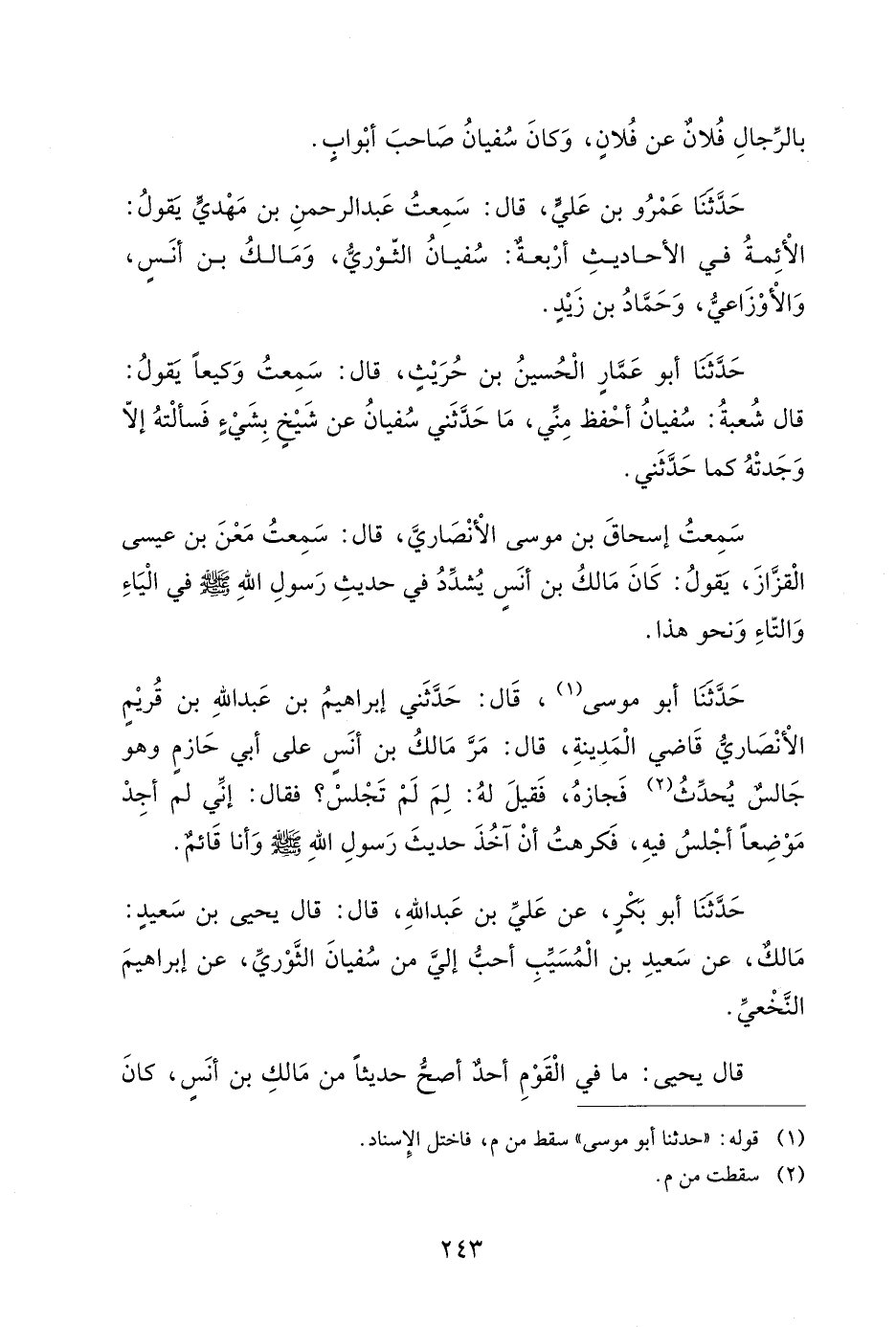 حدثنا أبو عمار الحسين بن حريث، أخبرنا زيد بن حباب عن رجل قال: خرج إلينا سفيان الثوري، فقال إن قلت لكم إنى أحدثكم كما سمعت فلا تصدقوني إنما هو الْمعنى.