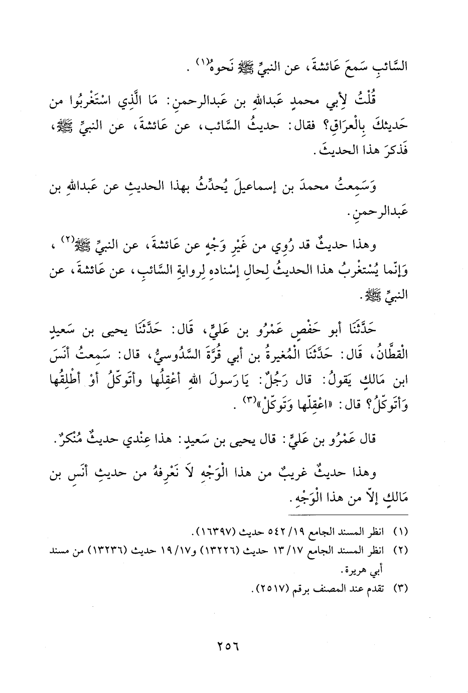 هذا حديث غريب من هذا الوجه من قبل إسناده وقد روى هذا الحديث من غير وجه، عن النبي صلى الله عليه وسلم وإنما يستغرب من حديث موسى سألت محمود بن غيلان عن هذا الحديث، فقال: هذا حديث أبى كريب عن أبى أسامة، وسألت محمد بن إسماعيل عن هذا الحديث، فقال: هذا حديث أبى كريب عن أبى أسامة، ولم نعرفه إلا من حديث أبى كريب، فقلت له حدثنا غير واحد عن أبى أسامة، بهذا فجعل بتعجب، وقال ما علمت أن أحدا حدث بهذا غير أبى كريب.