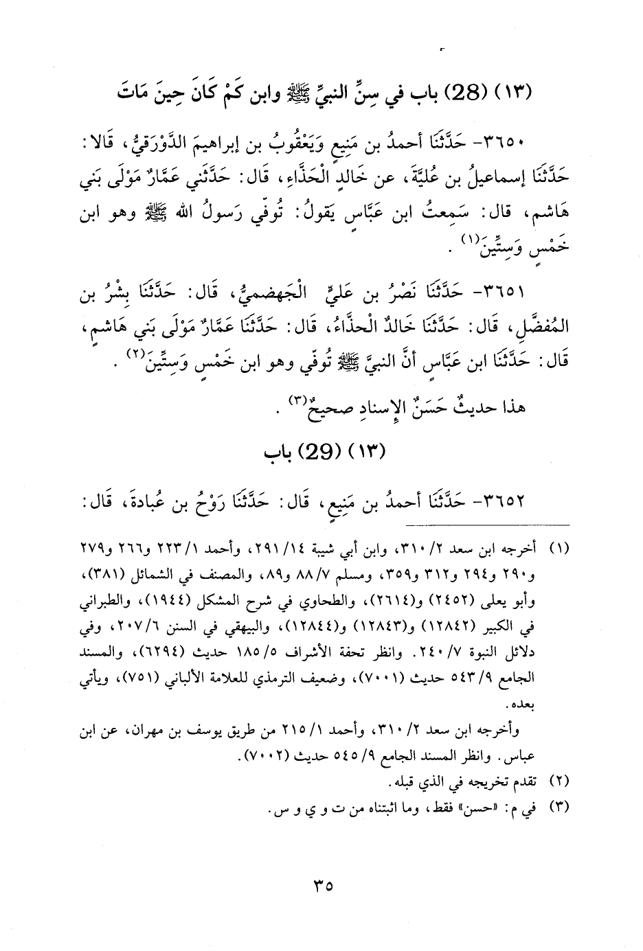 3638 - حَدَّثَنَا أَبُو جَعْفَرٍ مُحَمَّدُ بْنِ الحُسَيْنِ بْنِ أَبِي حَلِيمَةَ مِنْ قَصْرِ الأَحْنَفِ، وَأَحْمَدُ بْنُ عَبْدَةَ الضَّبِّيُّ، وَعَلِيُّ بْنُ حُجْرٍ الْمَعْنَى وَاحِدٌ، قَالُوا: حَدَّثَنَا عِيسَى بْنُ يُونُسَ، قَالَ: حَدَّثَنَا عُمَرُ بْنُ عَبْدِ اللهِ مَوْلَى غُفْرَةَ قَالَ: حَدَّثَنِي إِبْرَاهِيمُ بْنُ مُحَمَّدٍ، مِنْ وَلَدِ عَلِيِّ بْنِ أَبِي طَالِبٍ قَالَ: كَانَ عَلِيٌّ، إِذَا وَصَفَ النَّبِيَّ صَلَّى اللَّهُ عَلَيْهِ وَسَلَّمَ، قَالَ: لَيْسَ بِالطَّوِيلِ الْمُمَّغِطِ وَلاَ بِالقَصِيرِ الْمُتَرَدِّدِ وَكَانَ رَبْعَةً مِنَ القَوْمِ، وَلَمْ يَكُنْ بِالجَعْدِ القَطَطِ وَلاَ بِالسَّبِطِ كَانَ جَعْدًا رَجِلاً وَلَمْ يَكُنْ بِالمُطَهَّمِ، وَلاَ بِالمُكَلْثَمِ، وَكَانَ فِي الوَجْهِ تَدْوِيرٌ، أَبْيَضُ مُشْرَبٌ، أَدْعَجُ العَيْنَيْنِ، أَهْدَبُ الأَشْفَارِ، جَلِيلُ الْمُشَاشِ، وَالكَتَدِ، أَجْرَدُ ذُو مَسْرُبَةٍ شَثْنُ الكَفَّيْنِ وَالقَدَمَيْنِ، إِذَا مَشَى تَقَلَّعَ كَأَنَّمَا يَمْشِي فِي صَبَبٍ، وَإِذَا التَفَتَ التَفَتَ مَعًا، بَيْنَ كَتِفَيْهِ خَاتَمُ النُّبُوَّةِ وَهُوَ خَاتَمُ النَّبِيِّينَ، أَجْوَدُ النَّاسِ صَدْرًا، وَأَصْدَقُ النَّاسِ لَهْجَةً، وَأَلْيَنُهُمْ عَرِيكَةً، وَأَكْرَمُهُمْ عِشْرَةً، مَنْ رَآهُ بَدِيهَةً هَابَهُ، وَمَنْ خَالَطَهُ مَعْرِفَةً أَحَبَّهُ، يَقُولُ نَاعِتُهُ: لَمْ أَرَ قَبْلَهُ وَلاَ بَعْدَهُ مِثْلَهُ.