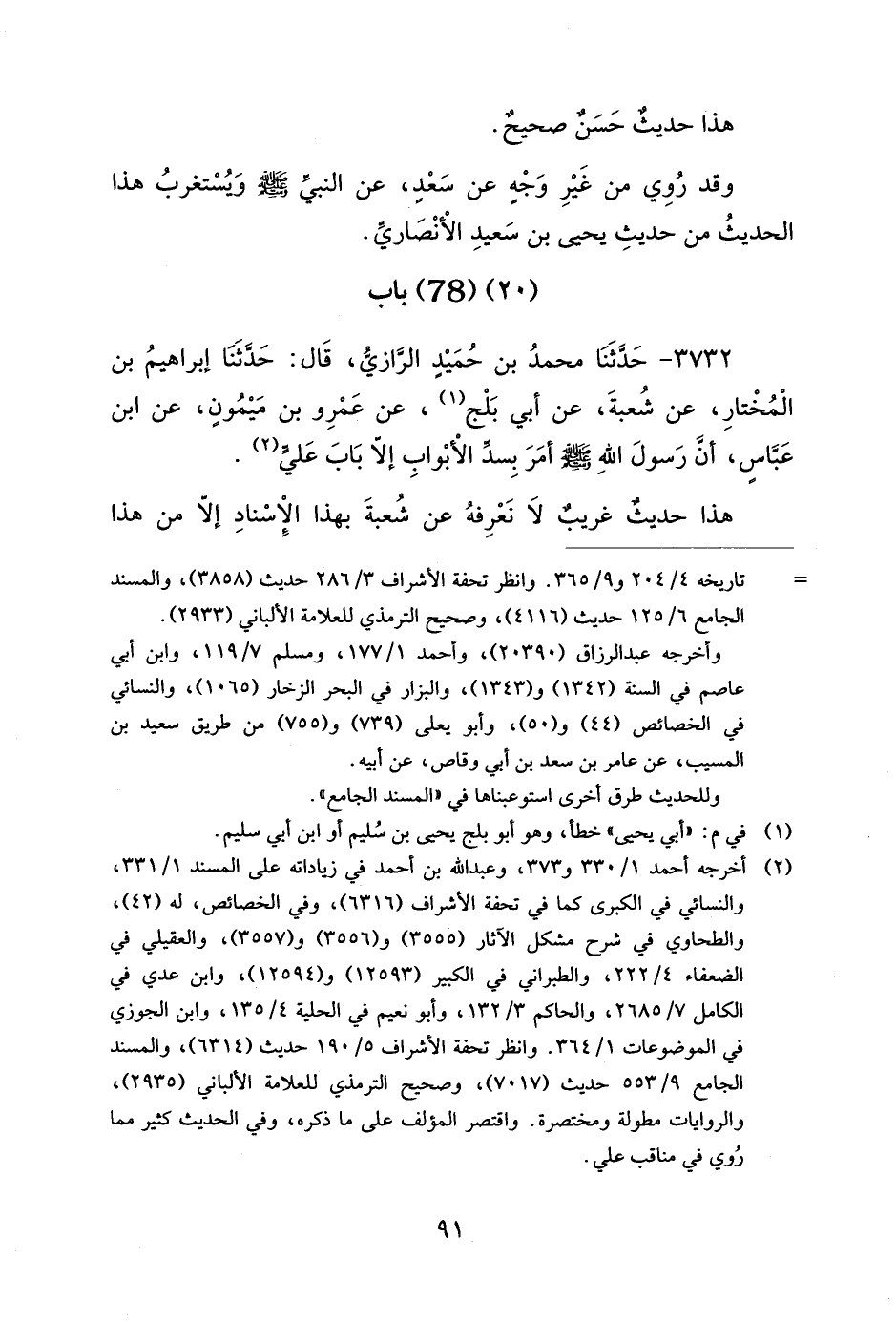 هَذَا حَدِيثٌ غَرِيبٌ مِنْ هَذَا الوَجْهِ، لاَ نَعْرِفُهُ مِنْ حَدِيثِ شُعْبَةَ، عَنْ أَبِي بَلْجٍ إِلاَّ مِنْ حَدِيثِ مُحَمَّدِ بْنِ حُمَيْدٍ، وَأَبُو بَلْجٍ اسْمُهُ: يَحْيَى بْنُ أَبِي سُلَيْمٍ.