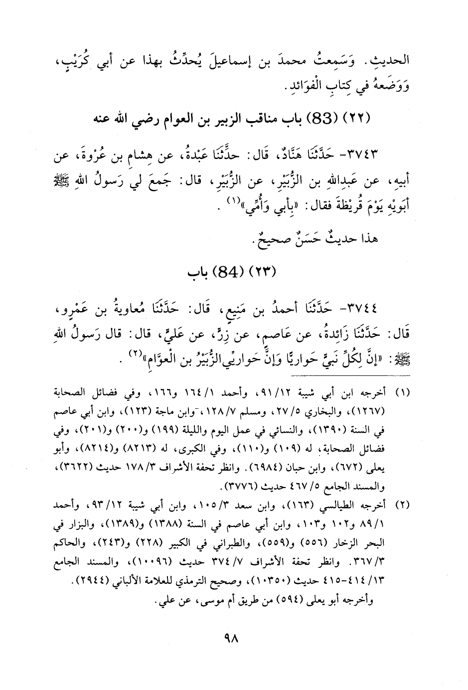 23 - بَابُ مَنَاقِبِ الزُّبَيْرِ بْنِ العَوَّامِ رَضِيَ اللَّهُ عَنْهُ
