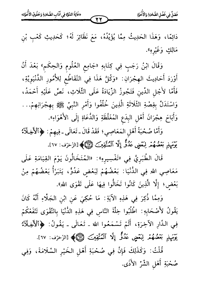 وأما صحبة أهل المعاصي؛ فقد قال _ تعالى _ فيهم: {الأَخِلاَّء يَوْمَئِذٍ بَعْضُهُمْ لِبَعْضٍ عَدُوٌّ إِلاَّ الْمُتَّقِين}.