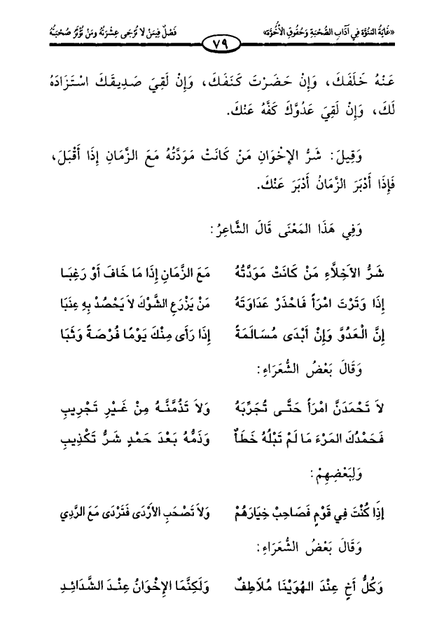 وقيل: شر الإخوان من كانت مودته مع الزمان إذا أقبل، فإذا أدبر الزمان أدبر عنك.