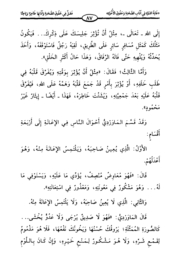 وقد قسم الماوردي أحوال الناس في الإعانة إلى أربعة أقسام: