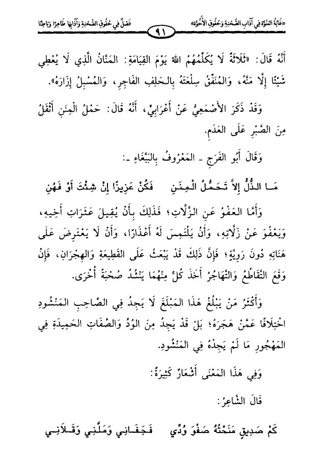 وقد ذكر الأصمعي عن أعرابي، أنه قال: حمل المنن أثقل من الصبر على العدم.
