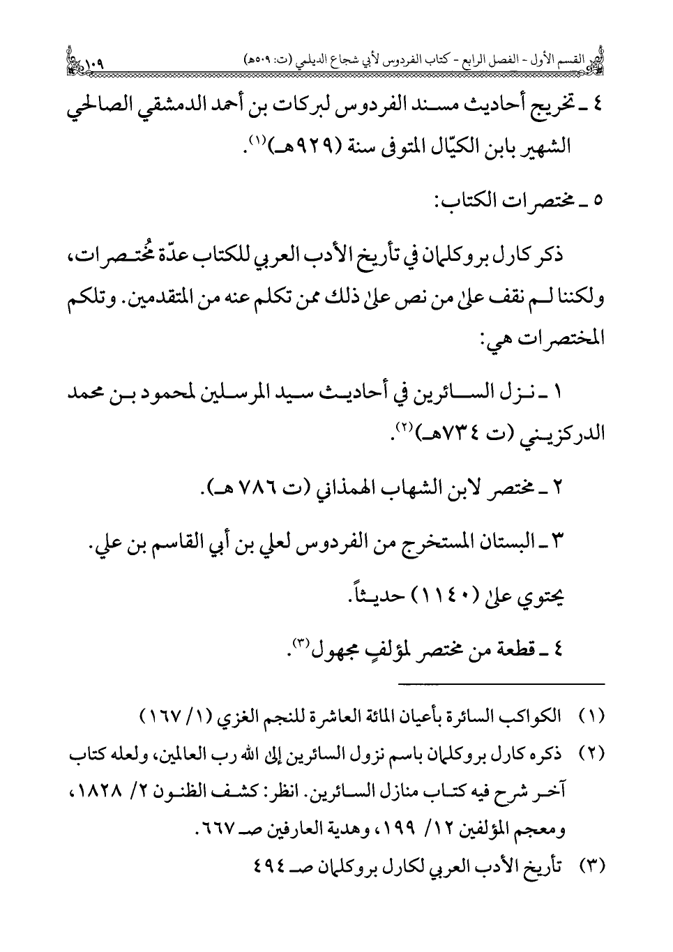 (¬٣) تأريخ الأدب العربي لكارل بروكلمان ص ٤٩٤.