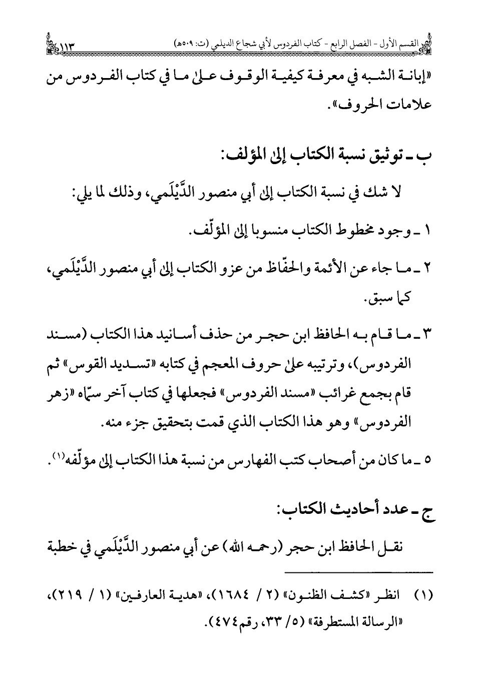 لا شك في نسبة الكتاب إلى أبي منصور الدَّيْلَمي، وذلك لما يلي: