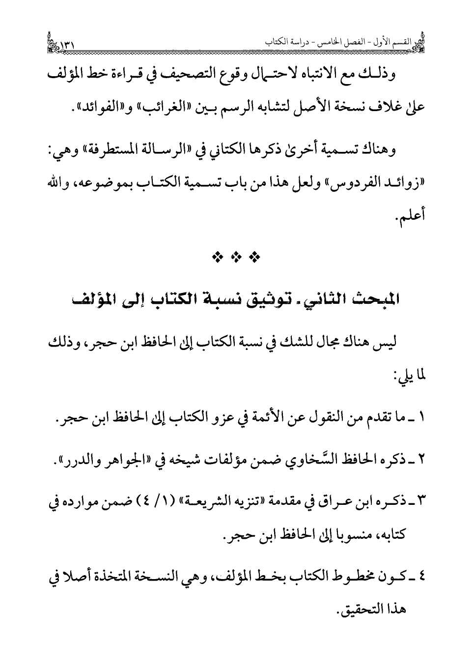 ٤ - كون مخطوط الكتاب بخطِّ المؤلف، وهي النسخة المتخذة أصلًا في هذا التحقيق.