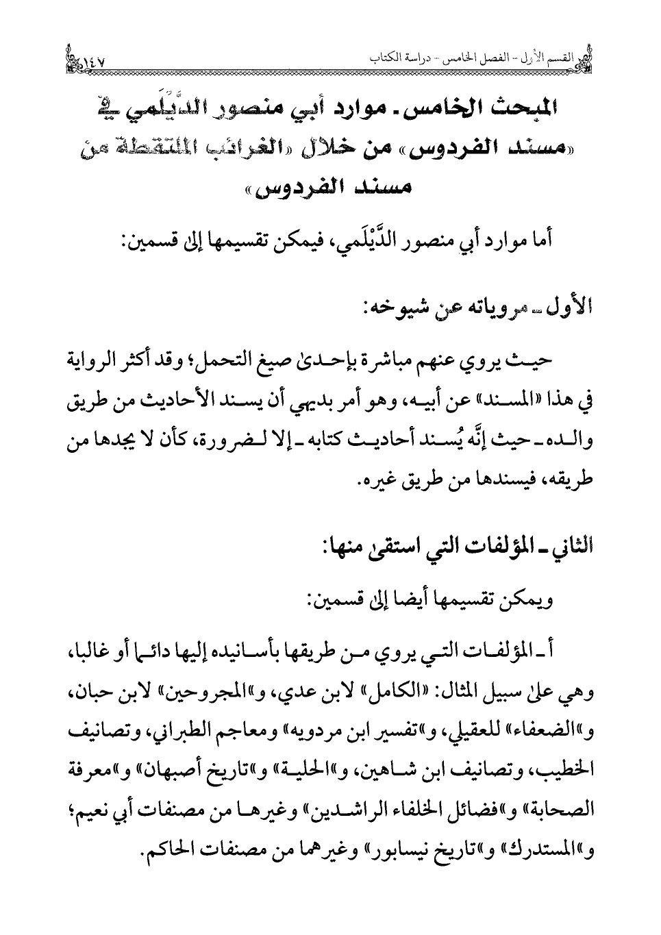 المبحث الخامس - موارد أبي منصور الديلمي في "مسند الفردوس" من خلال "الغرائب الملتقطة من مسند الفردوس"