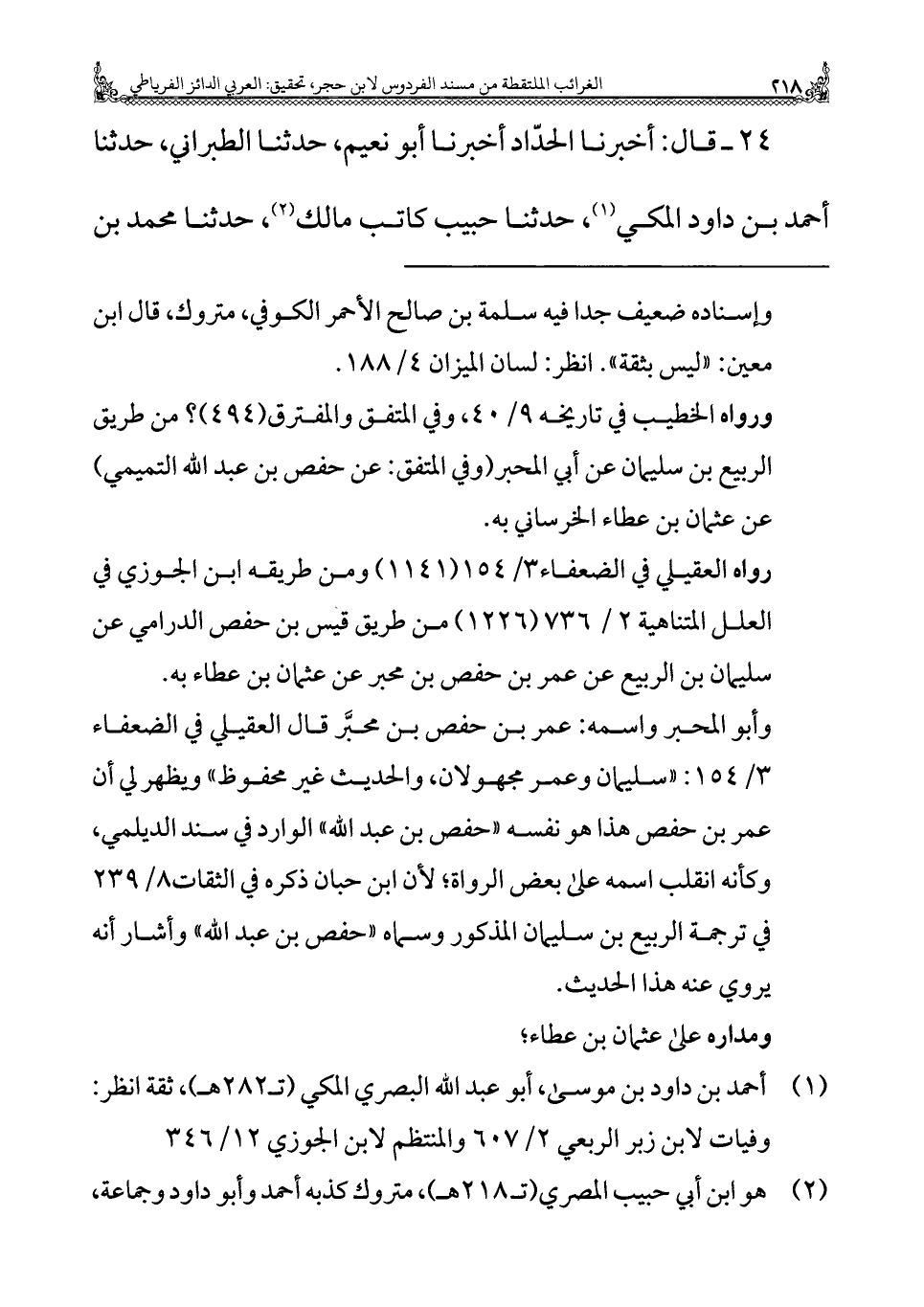 ورواه الخطيب في تاريخه ٩/ ٤٠، وفي المتفق والمفترق (٤٩٤)؟ من طريق الربيع بن سليمان عن أبي المحبر (وفي المتفق: عن حفص بن عبد الله التميمي) عن عثمان بن عطاء الخرساني به.