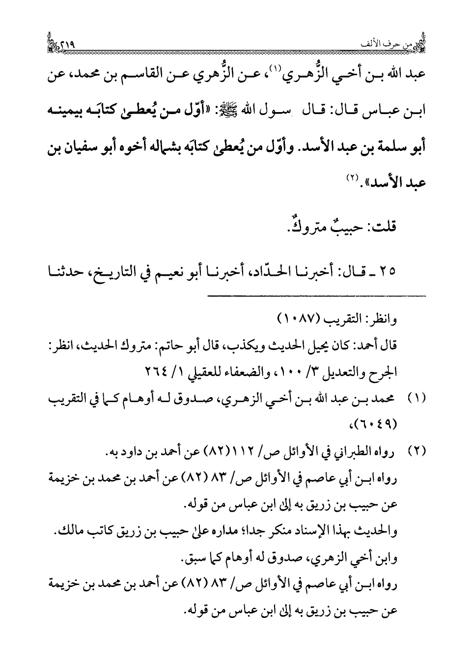 (¬١) محمد بن عبد الله بن أخي الزهري، صدوق له أوهام كما في التقريب (٦٠٤٩).