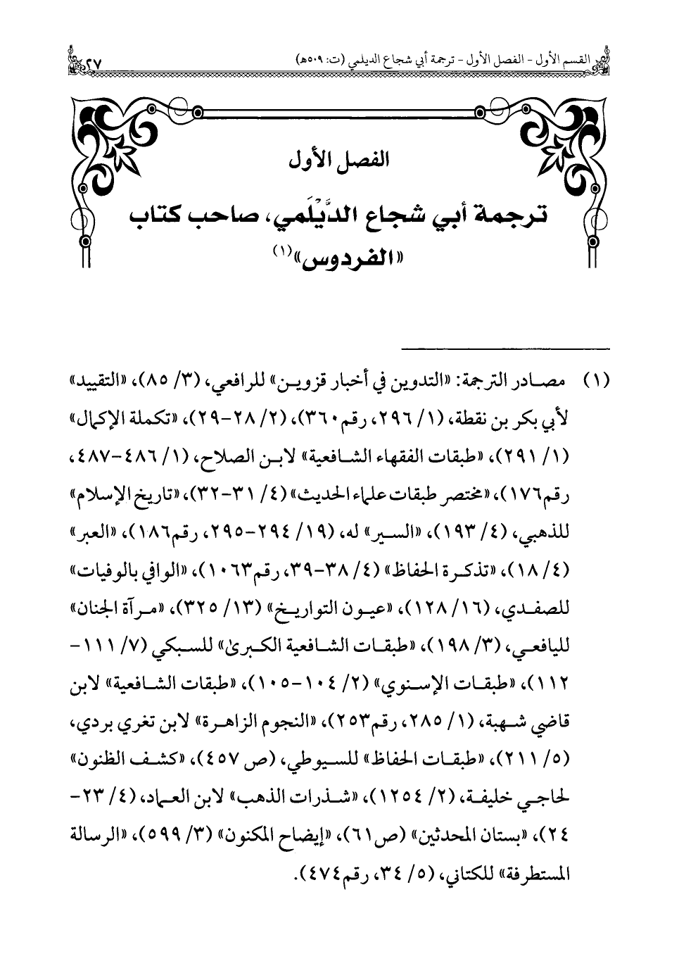 الفصل الأول ترجمة أبي شجاع الدَّيْلَمي، صاحب كتاب "الفردوس" (¬١)