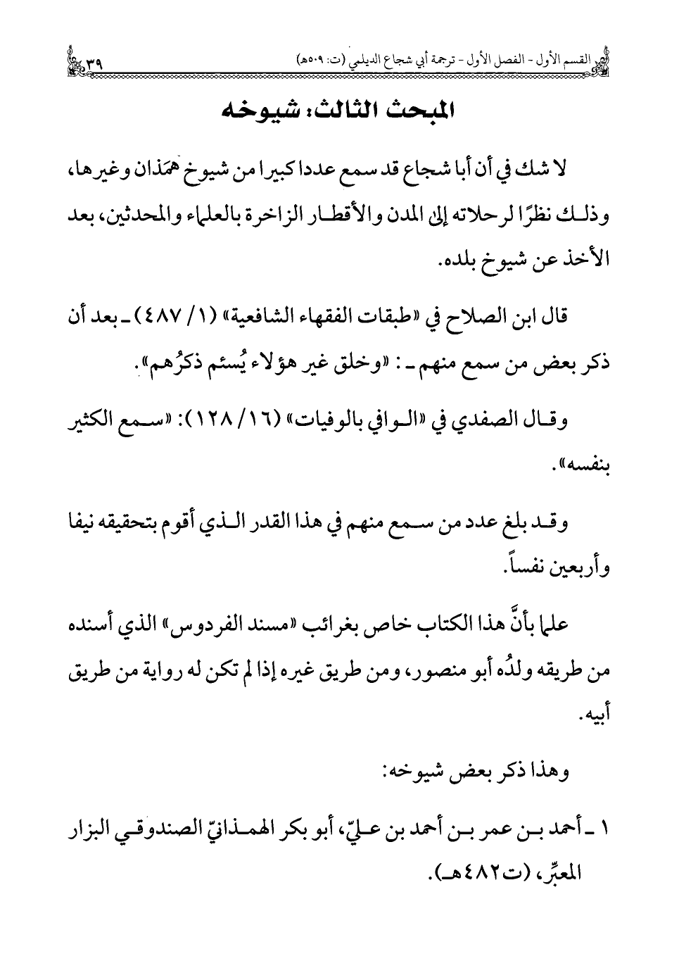 وقد بلغ عدد من سمع منهم في هذا القدر الذي أقوم بتحقيقه نيفا وأربعين نفسًا.