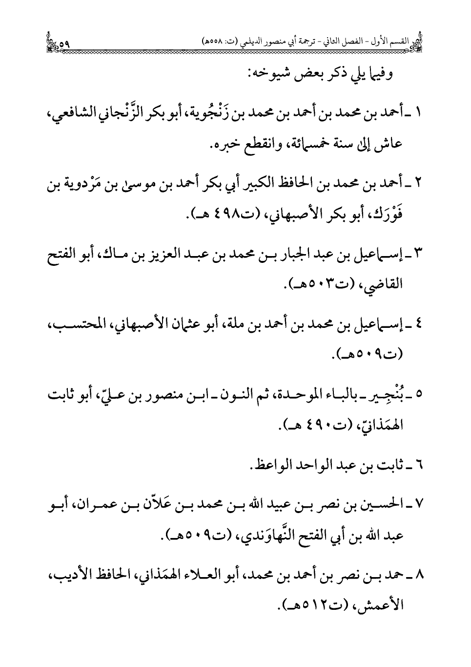 ٧ - الحسين بن نصر بن عبيد الله بن محمد بن عَلّان بن عمران، أَبُو عبد الله بن أبي الفتح النَّهاوَندي، (ت ٥٠٩ هـ).
