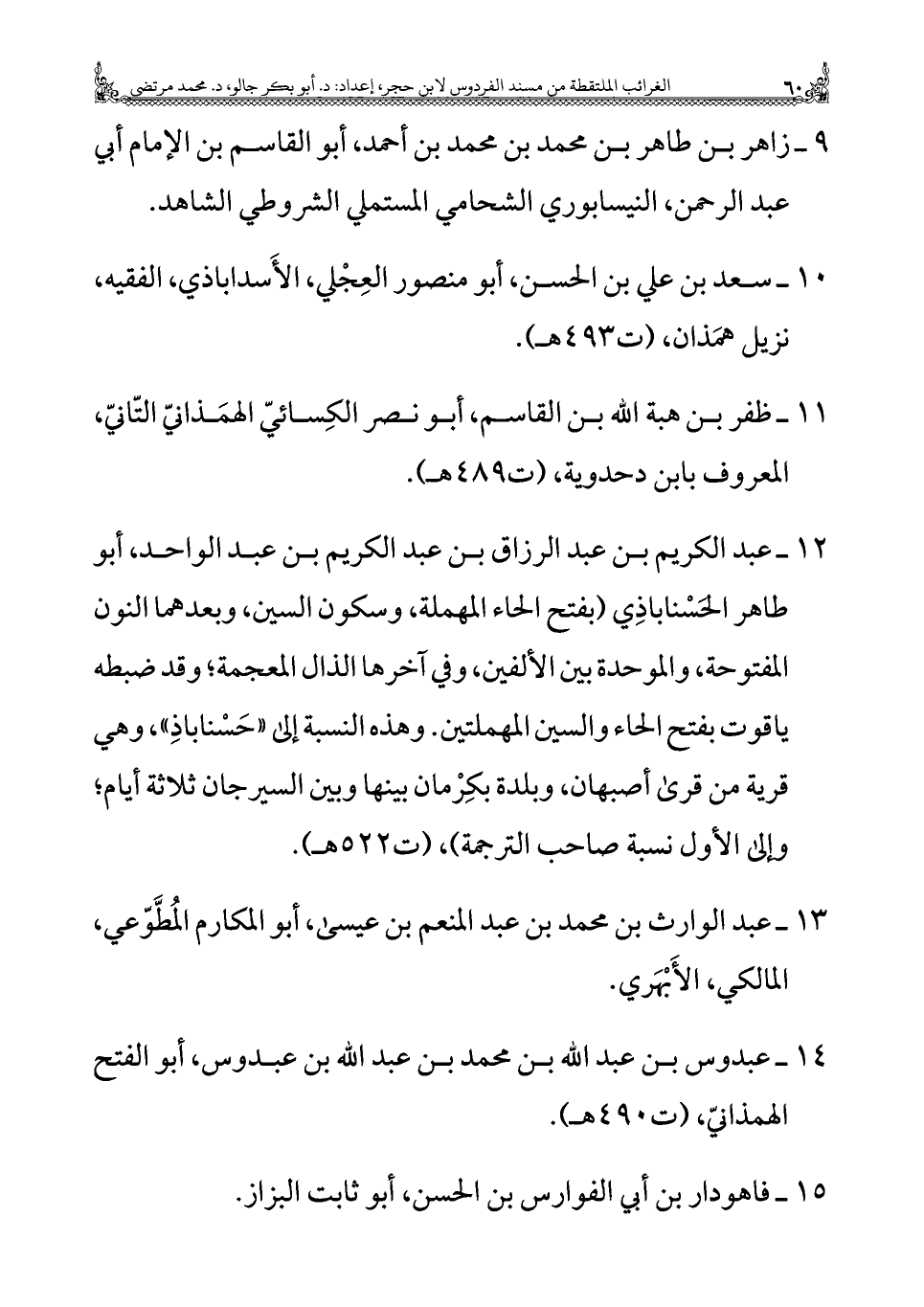 ١٤ - عبدوس بن عبد الله بن محمد بن عبد الله بن عبدوس، أَبُو الفتح الهمذانيّ، (ت ٤٩٠ هـ).