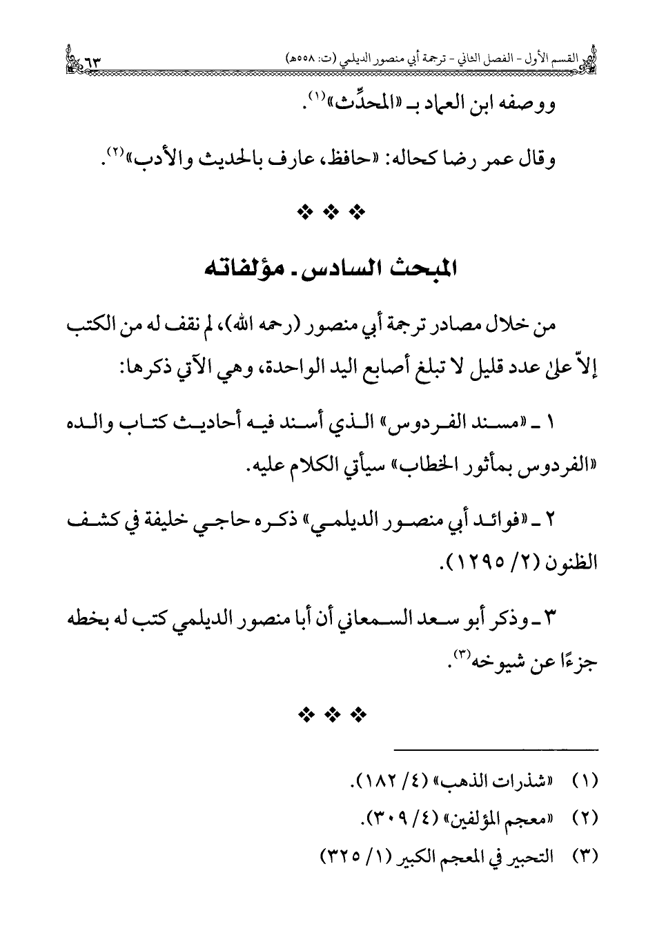 ٣ - وذكر أَبُو سعد السمعاني أن أبا منصور الديلمي كتب له بخطه جزءًا عن شيوخه (¬٣).