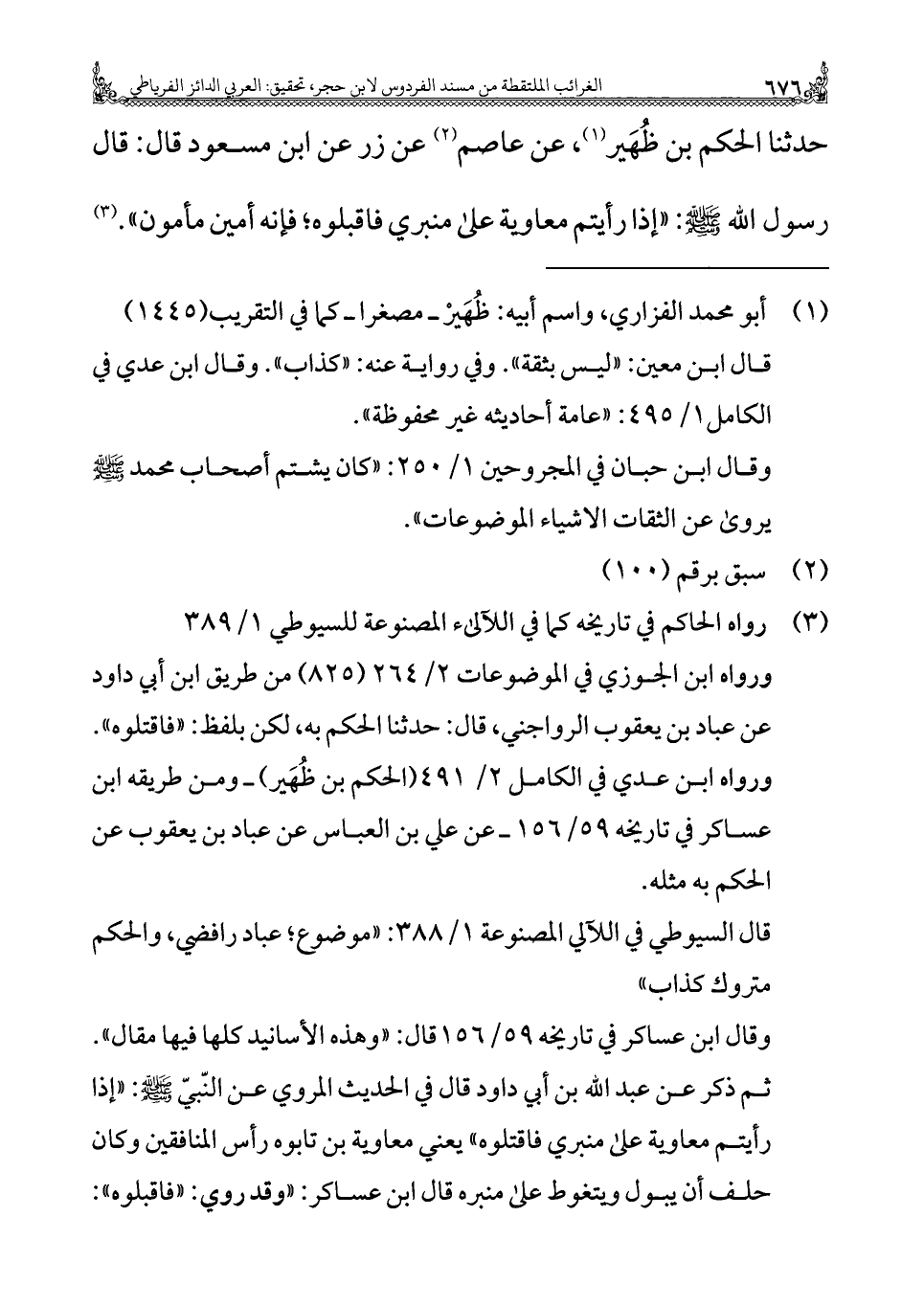 كتاب زهر الفردوس = الغرائب الملتقطة من مسند الفردوس (اسم الجزء: 1)