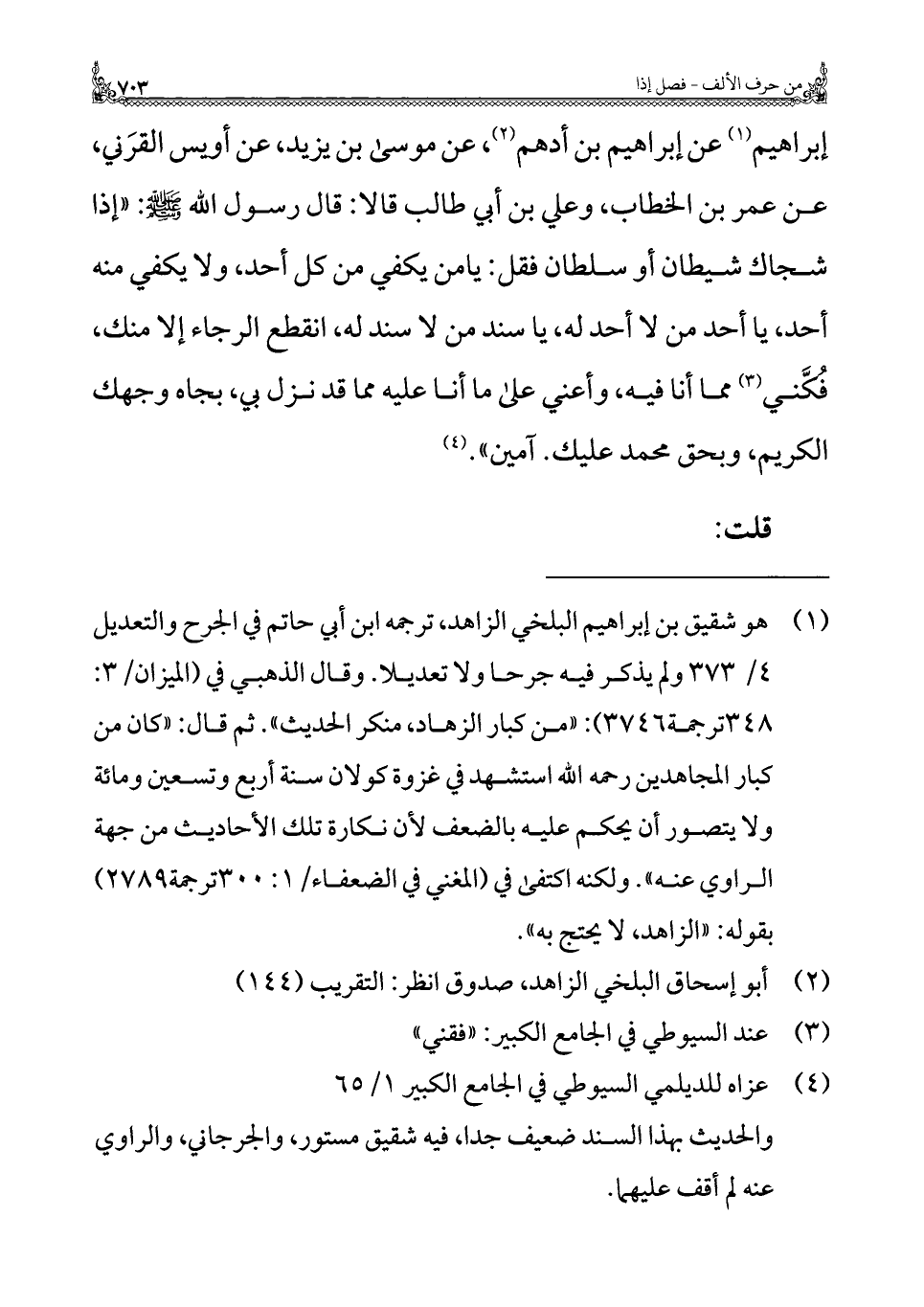 (¬٢) أبو إسحاق البلخي الزاهد، صدوق انظر: التقريب (١٤٤).