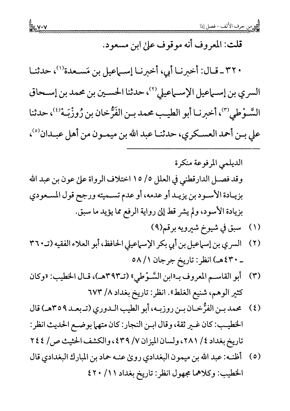 (¬٢) السري بن إسماعيل بن أبي بكر الإسماعيلي الحافظ، أبو العلاء الفقيه (ت ٣٦٠ - ٤٣٠ هـ) انظر: تاريخ جرجان ١/ ٥٨.