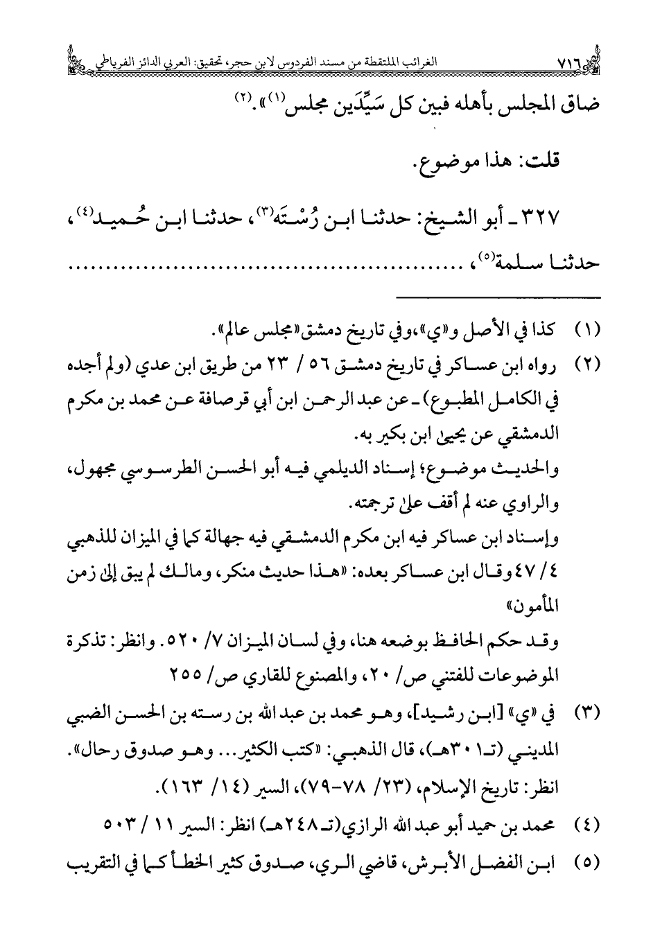 (¬٥) ابن الفضل الأبرش، قاضي الري، صدوق كثير الخطأ كما في التقريب =