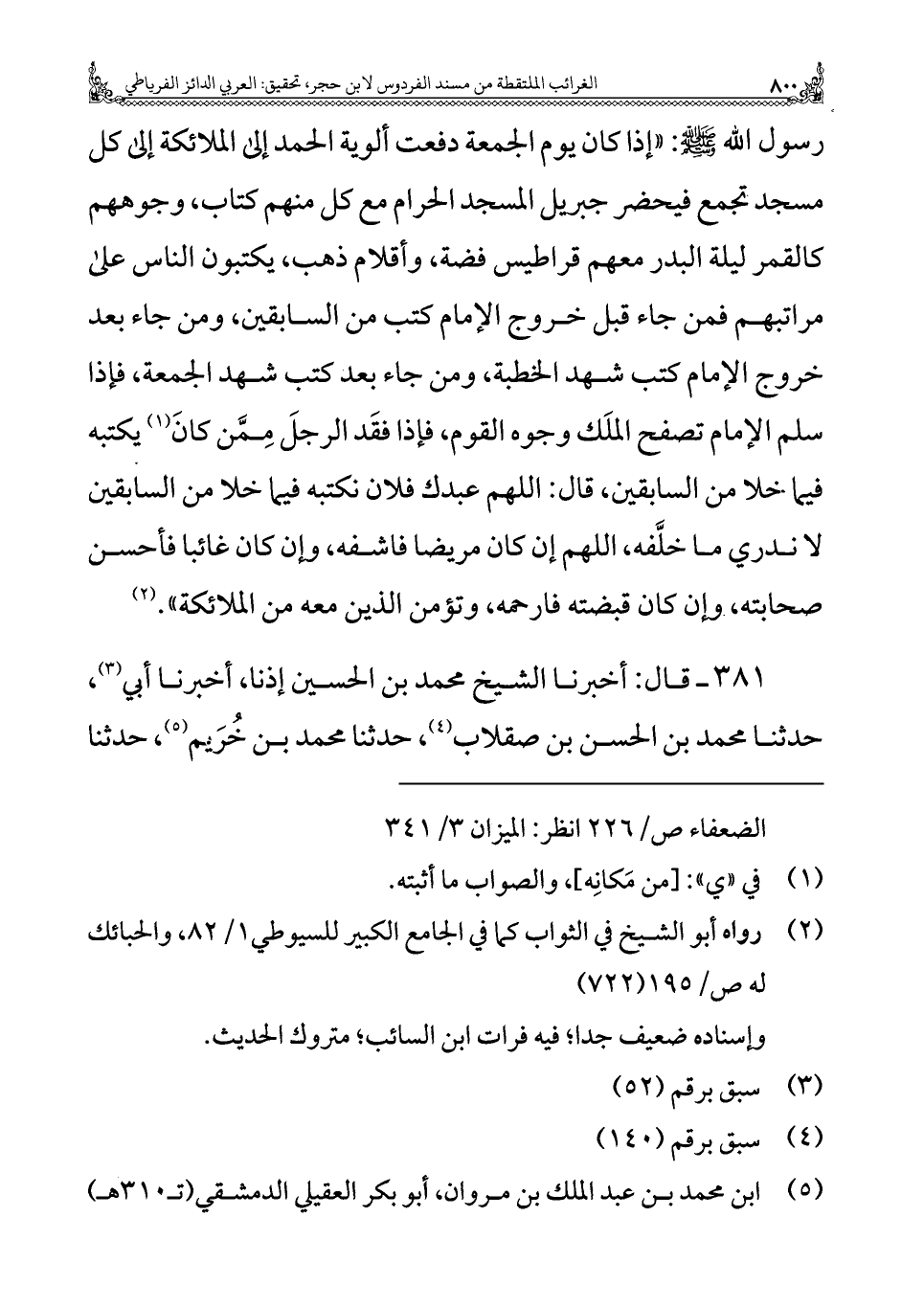 ٣٨١ - قال: أخبرنا الشيخ محمد بن الحسين إذنا، أخبرنا أبي (¬٣)، حدثنا محمد بن الحسن بن صقلاب (¬٤)، حدثنا محمد بن خُرَيم (¬٥)، حدثنا