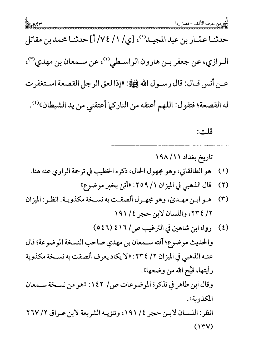 = تاريخ بغداد ١١/ ١٩٨.