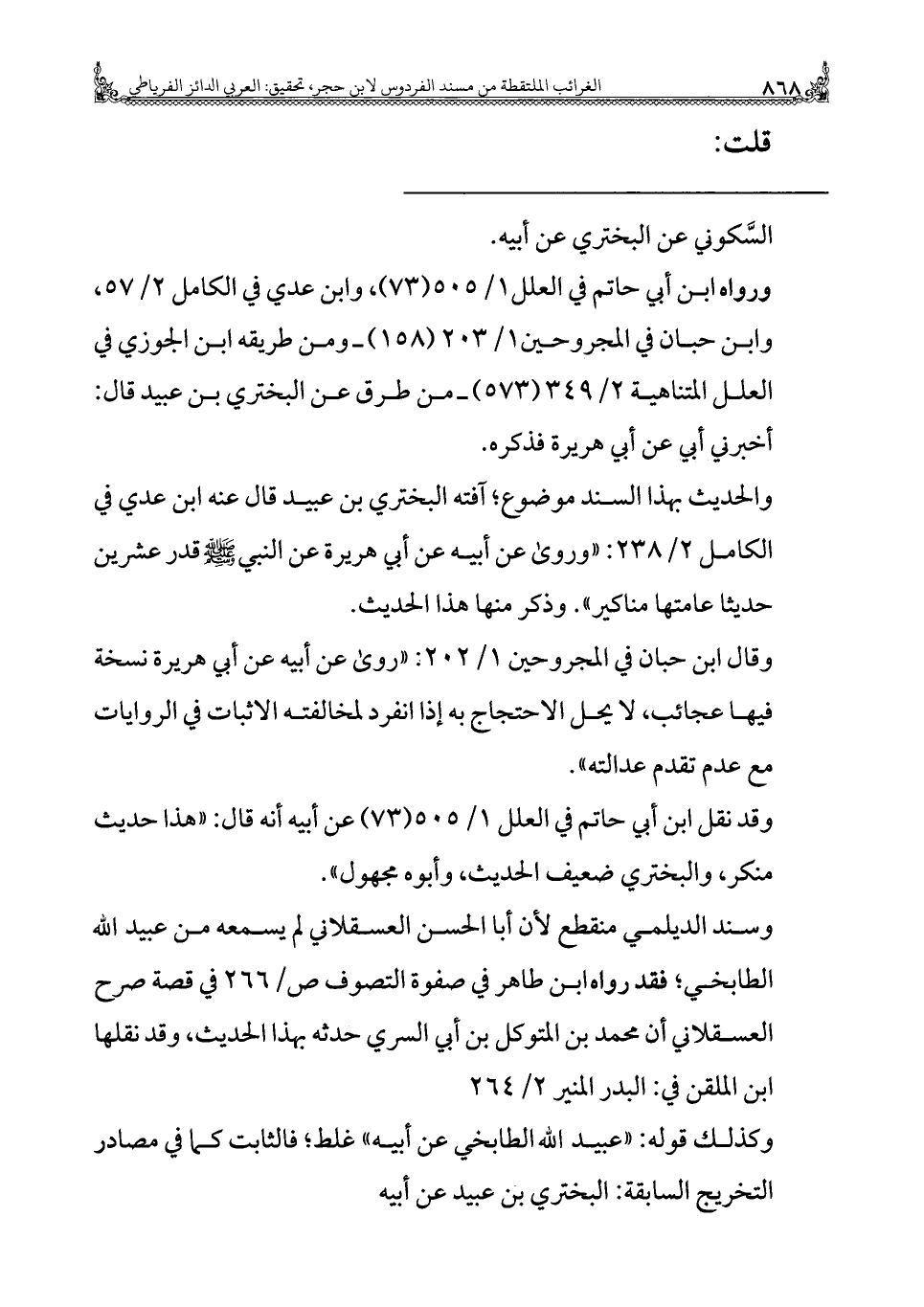 كتاب زهر الفردوس = الغرائب الملتقطة من مسند الفردوس (اسم الجزء: 1)