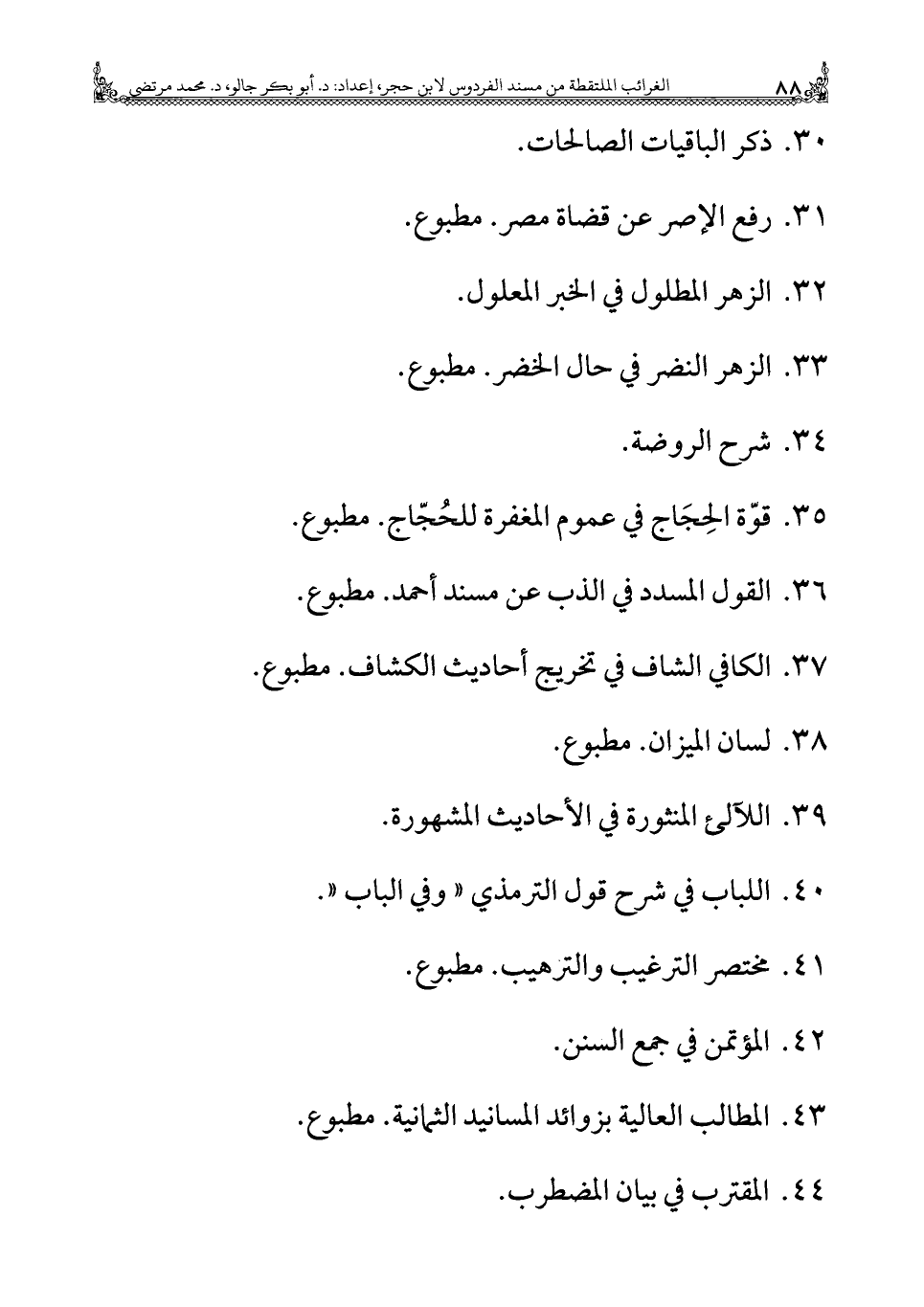 ٤٣ - المطالب العالية بزوائد المسانيد الثمانية. مطبوع.