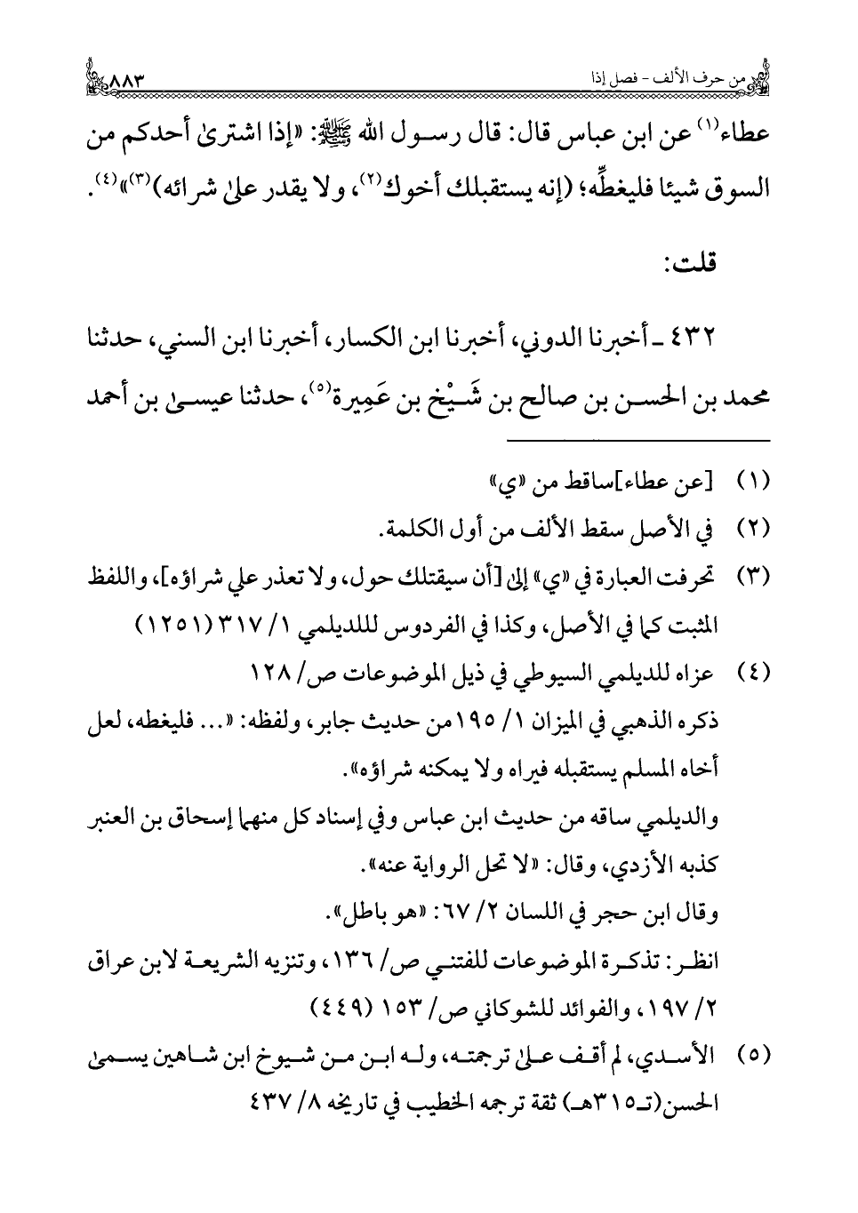 (¬٤) عزاه للديلمي السيوطي في ذيل الموضوعات ص/ ١٢٨
