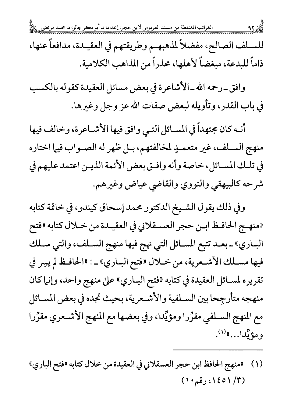 (¬١) "منهج الحافظ ابن حجر العسقلاني فِي العقيدة من خلال كتابه "فتح الباري" (٣/ ١٤٥١، رقم ١٠).