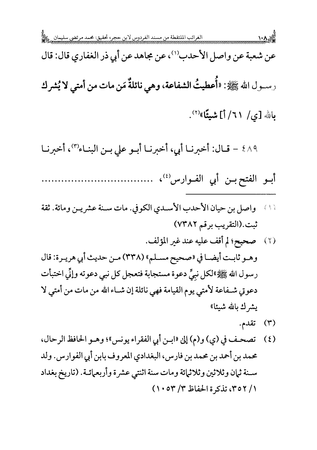 كتاب زهر الفردوس = الغرائب الملتقطة من مسند الفردوس (اسم الجزء: 2)