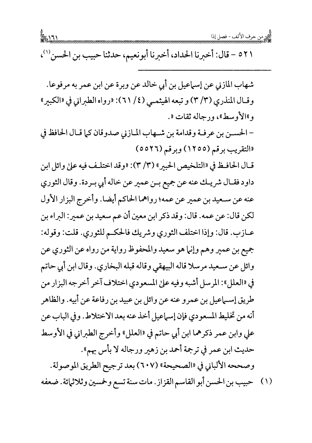 ٥٢١ - قَالَ: أخبرنا الحداد، أخبرنا أبو نعيم، حَدَّثَنَا حبيب بن الحسن (¬١)،