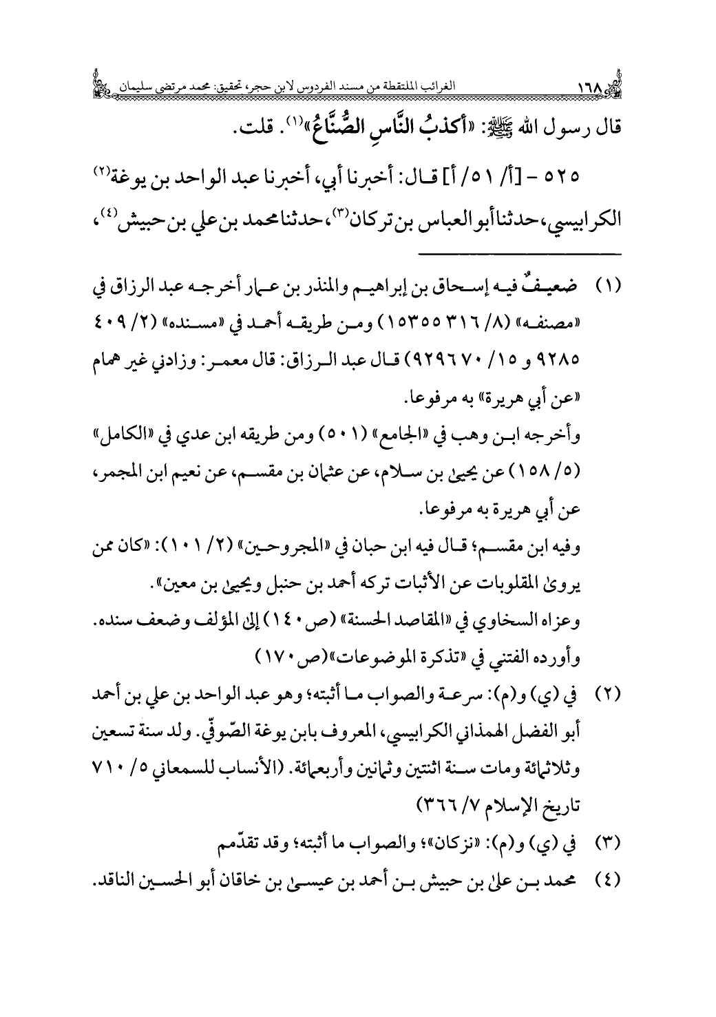 قَالَ رسول الله - صَلَّى اللهُ عَلَيْهِ وَسَلَّمَ -: "أكذبُ النَّاسِ الصُّنَّاعُ" (¬١). قلت.