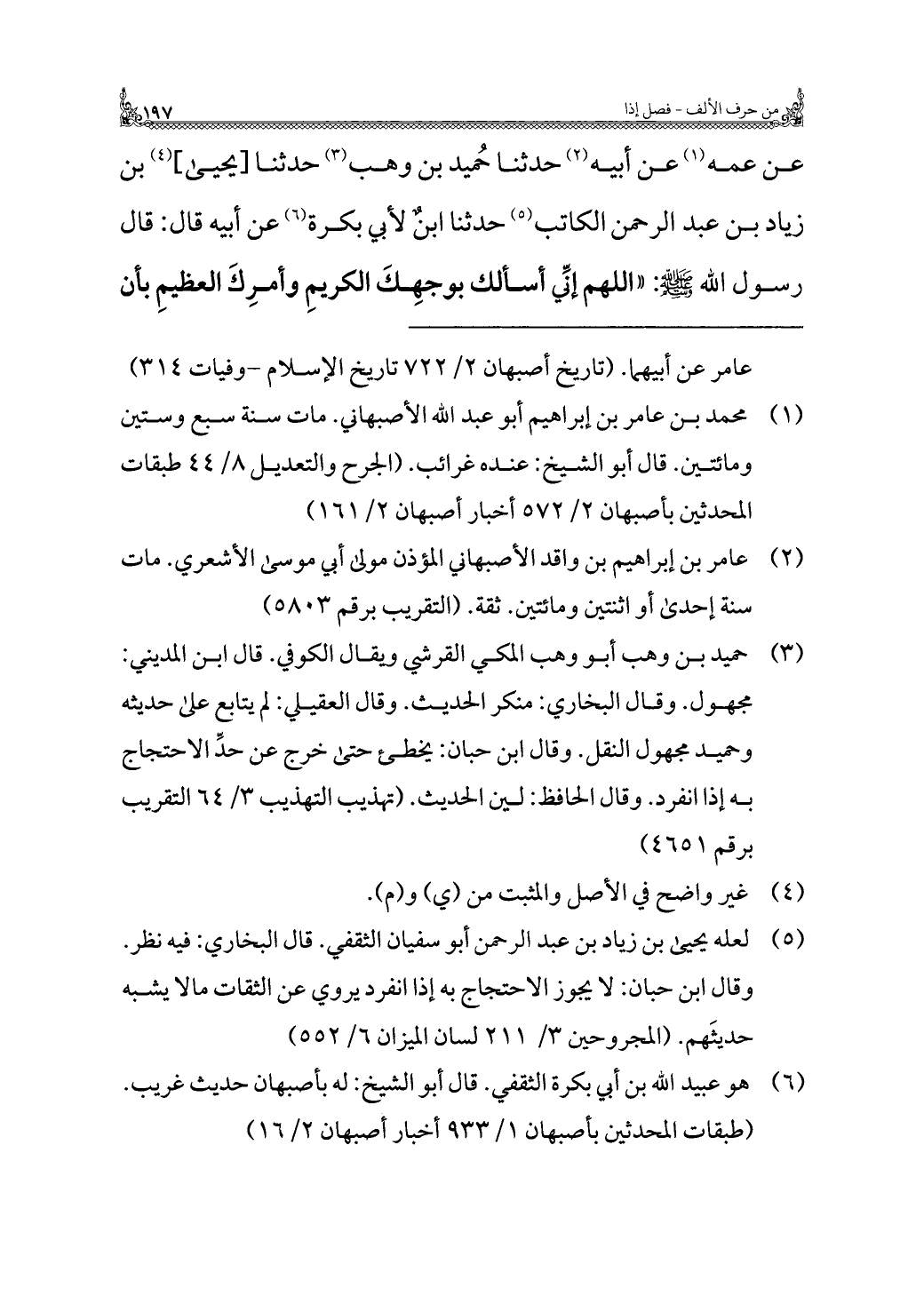 (¬١) مُحَمَّد بن عامر بن إبْرَاهِيم أَبُو عَبْدُ الله الأصبهاني. مات سنة سبع وستين ومائتين. قَالَ أَبُو الشيخ: عنده غرائب. (الجرح والتعديل ٨/ ٤٤ طبقات المحدثين بأصبهان ٢/ ٥٧٢ أخبار أصبهان ٢/ ١٦١)
