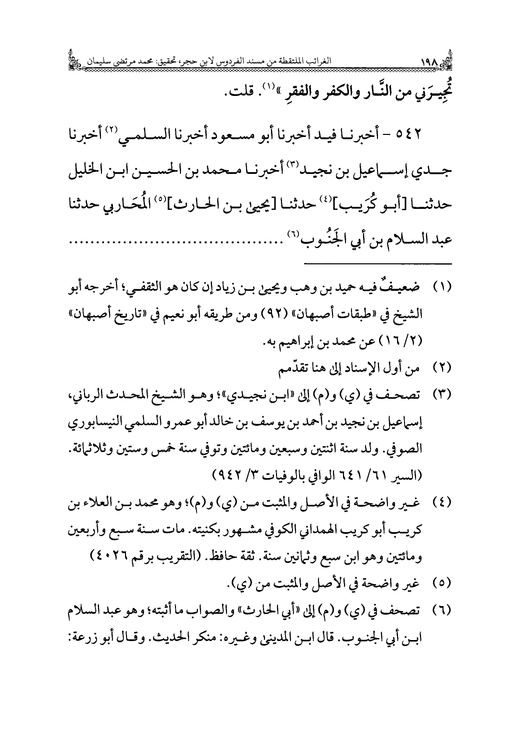 ٥٤٢ - أخبرنا فيد أخبرنا أَبُو مسعود أخبرنا السُّلَمي (¬٢) أخبرنا جدي إسماعيل بن نجيد (¬٣) أخبرنا مُحَمَّد بن الحسين بن الخليل حَدَّثَنَا [أَبُو كُرَيب] (¬٤) حَدَّثَنَا [يحيى بن الحارث] (¬٥) المُحَاربي حَدَّثَنَا عَبْدُ السلام بن أَبِي الجَنُوب (¬٦)