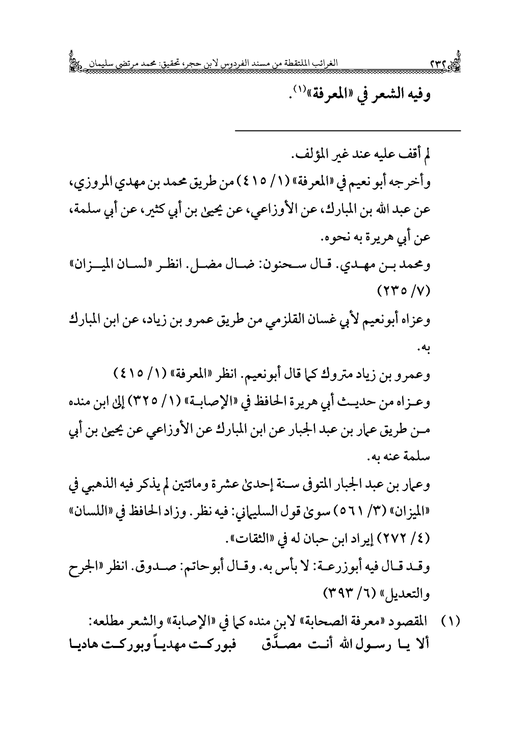 وعزاه أبو نعيم لأبي غسَّان القلزمي من طريق عَمْرو بن زياد، عن ابْن المُباركِ به.