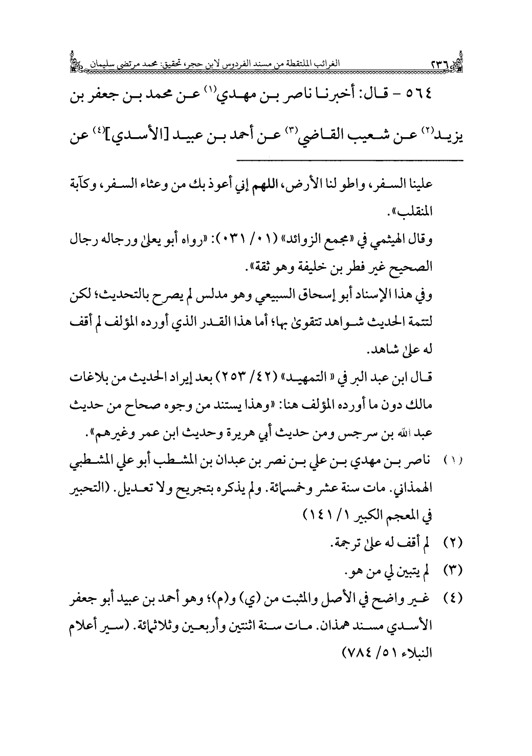 (¬٤) غير واضح في الأصل والمثبت من (ي) و (م)؛ وهو أحمد بن عبيد أَبُو جَعْفَر الأسدي مسند همذان. مات سنة اثنتين وأربعين وثلاثمائة. (سير أعلام النبلاء ٥١/ ٧٨٤)