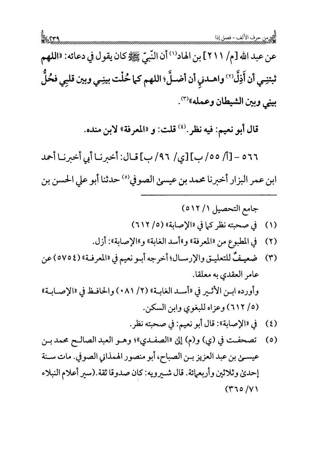 (¬٤) في "الإصابة": قَالَ أَبُو نعيم: في صحبته نظر.