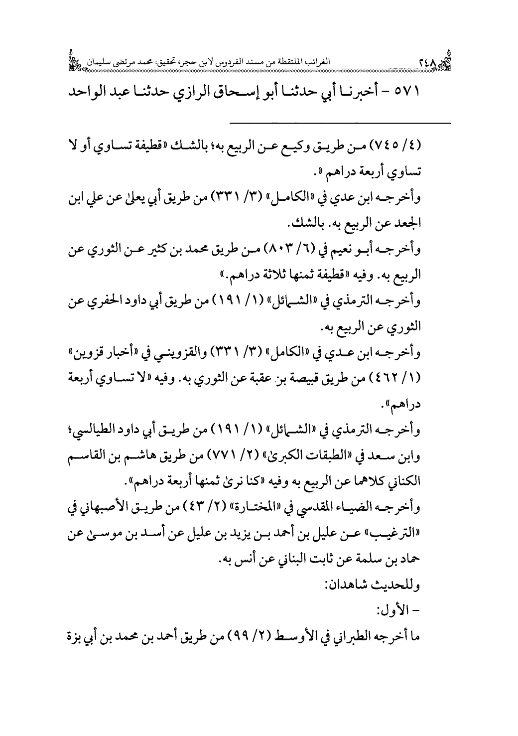 كتاب زهر الفردوس = الغرائب الملتقطة من مسند الفردوس (اسم الجزء: 2)