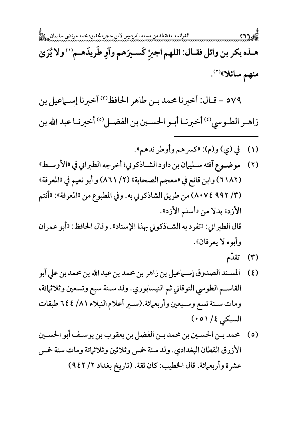 ٥٧٩ - قال: أخبرنا محمد بن طاهر الحافظ (¬٣) أخبرنا إسماعيل بن زاهر الطُّوسي (¬٤) أخبرنا أبو الحسين بن الفضل (¬٥) أخبرنا عبد الله بن
