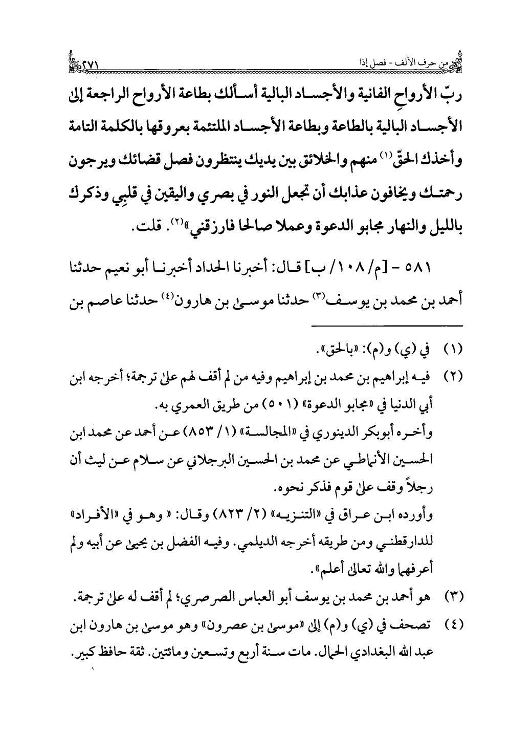 ٥٨١ - قال: أخبرنا الحداد أخبرنا أبو نعيم حدثنا أحمد بن محمد بن يوسف (¬٣) حدثنا موسى بن هارون (¬٤) حدثنا عاصم بن