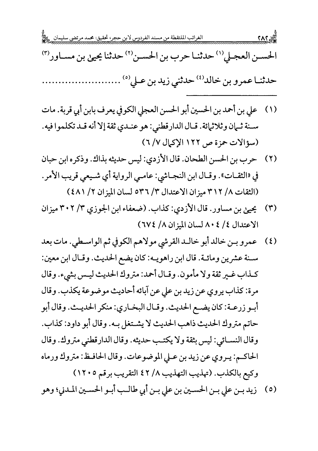 الحسن العجلي (¬١) حدثنا حرب بن الحسن (¬٢) حدثنا يحيى بن مساور (¬٣) حدثنا عمرو بن خالد (¬٤) حدثني زيد بن علي (¬٥)