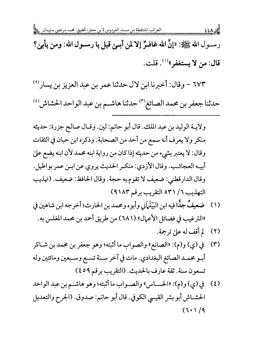 (¬٤) في (ي) و (م): "الحساس" والصَّواب ما أثبته؛ وهو هاشم بن عبد الواحد الحشاش أبو بشر القيسي الكوفي. قال أبو حاتم: صدوق. (الجرح والتعديل ٩/ ٦٠١)