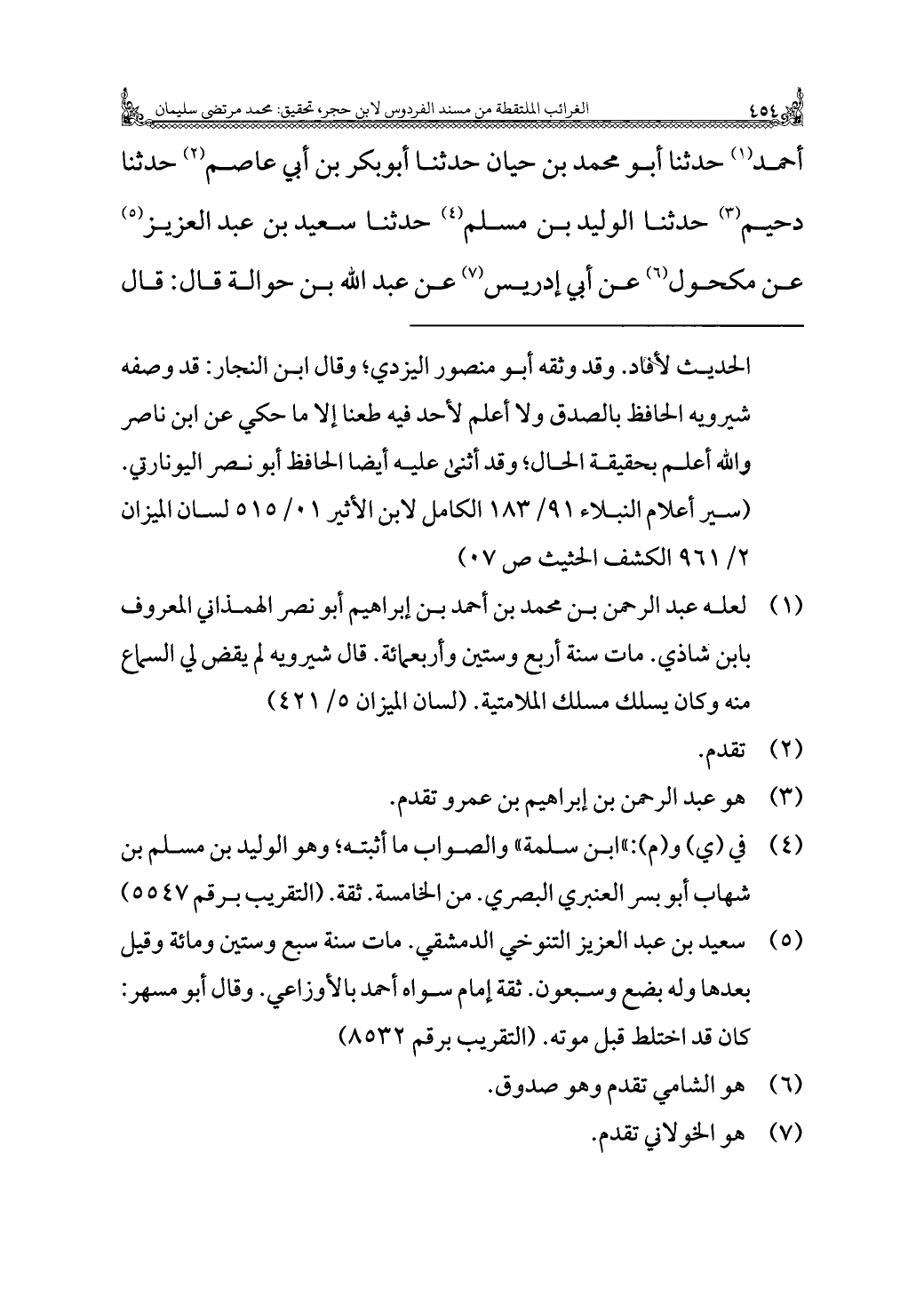 (¬٥) سعيد بن عبد العزيز التنوخي الدمشقي. مات سنة سبع وستين ومائة وقيل بعدها وله بضع وسبعون. ثقة إمام سواه أحمد بالأوزاعي. وقال أبو مسهر: كان قد اختلط قبل موته. (التقريب برقم ٨٥٣٢)