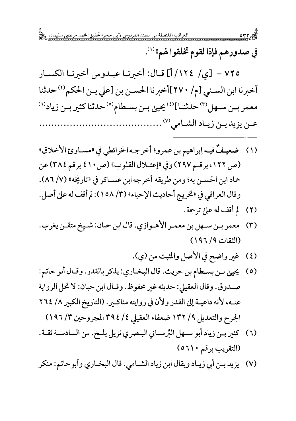 (¬٥) يحيى بن بسطام بن حريث. قال البخاري: يذكر بالقدر. وقال أبو حاتم: صدوق. وقال العقيلي: حديثه غير محفوظ. وقال ابن حبان: لا تحل الرواية عنه، لأنه داعية إلى القدر ولأن في روايته مناكير. (التاريخ الكبير ٨/ ٢٦٤ الجرح والتعديل ٩/ ١٣٢ ضعفاء العقيلي ٤/ ٣٩٤ المجروحين ٣/ ١٩٦)